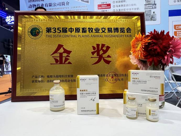朗威明星產(chǎn)品硫酸頭孢朗威殖寶硫酸頭孢喹肟注射液榮獲第35屆中原畜牧業(yè)交易博覽會(huì)金獎(jiǎng)!